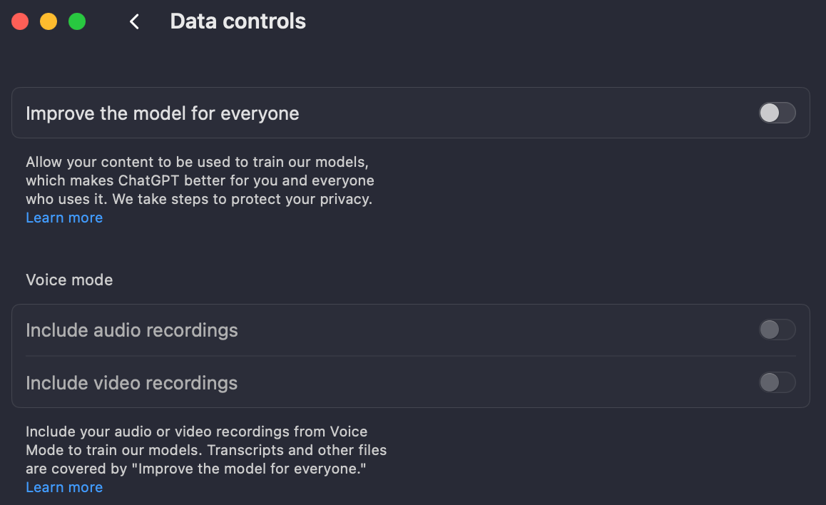 When you switch “Improve the model for everyone” on, you’re allowing OpenAI to use small, anonymised snippets of your chats to help train future models. This helps make the system more accurate and useful, including for education-related prompts.