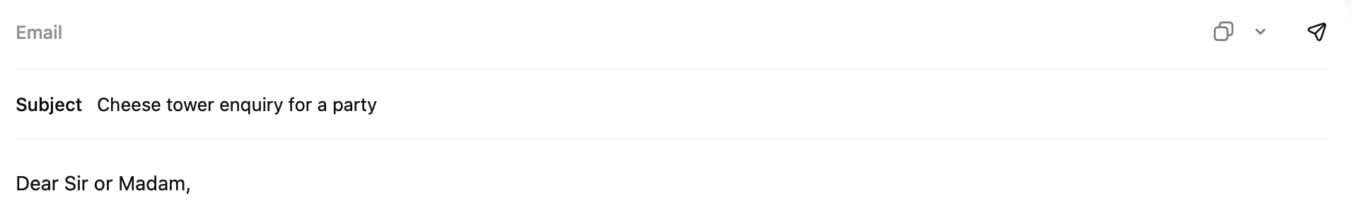 A short quality of life tip here: If you ask ChatGPT to help draft an email, then it will appear in this user interface. On a mobile device, if you click the ‘paper aeroplane’ icon, it will open up your default mail client and populate the subject and body of the email saving you time having to select, copy and paste between two applications.