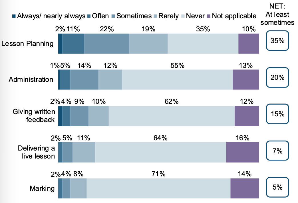 44% > The percentage of teachers using AI tools according to the English Department for Education.